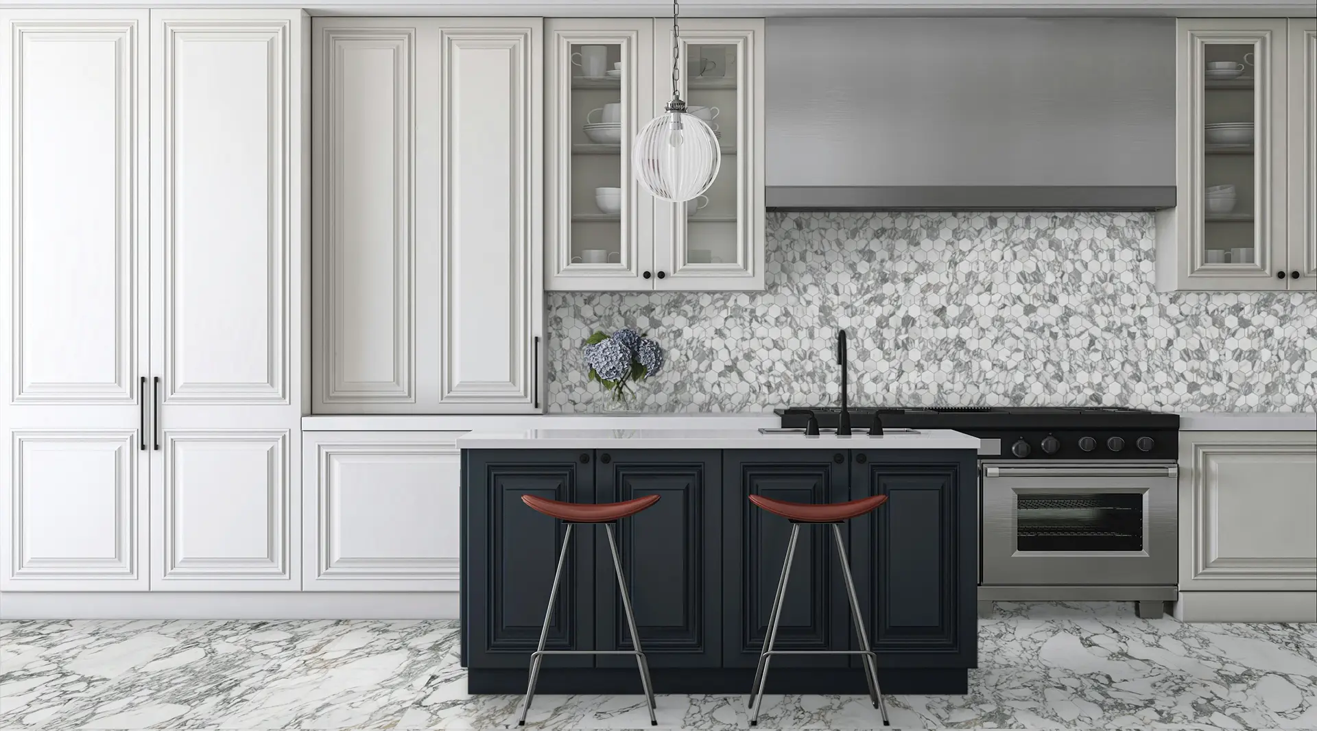 Arabescato Corchia showcases graceful artistry with sinuous veining elegantly weaving across a luminous white backdrop. Its fluid lines create a captivating interplay of movement and contrast, reflecting the natural sculpting of marble over time. This exquisite design embodies a perfect balance of bold expression and subtle sophistication, making it a refined choice to elevate both classic and contemporary interiors with timeless beauty.