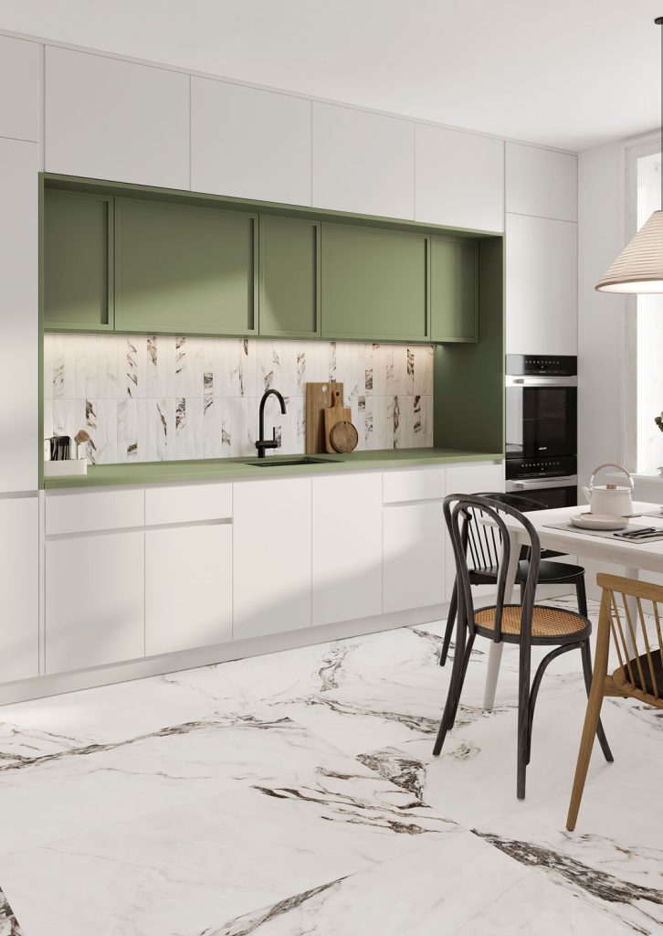 Marble-style porcelain tiles collection inspired by the famous Calacatta Monet marble, originally from the Apuan Alps in Italy. The natural marble is extracted from a single quarry that produces large blocks in very limited quantities and is highly regarded in the world of interior design. Therefore, its reproduction on porcelain surfaces is of exceptional interest as it multiplies the possibilities for decorative applications that allow us to enjoy its elegance while accentuating its natural beauty and luxury.