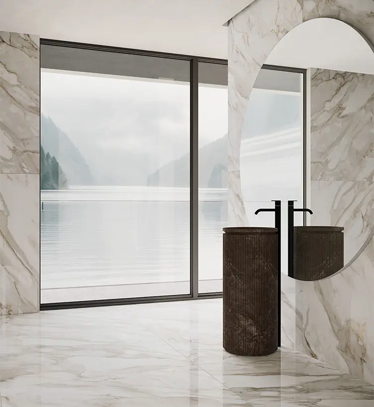 Calacatta Oro radiates timeless luxury with its creamy white foundation and graceful golden veins. The surface embodies refined taste and exclusive elegance, drawing inspiration from classic stone to offer warmth, richness, and enduring sophistication.