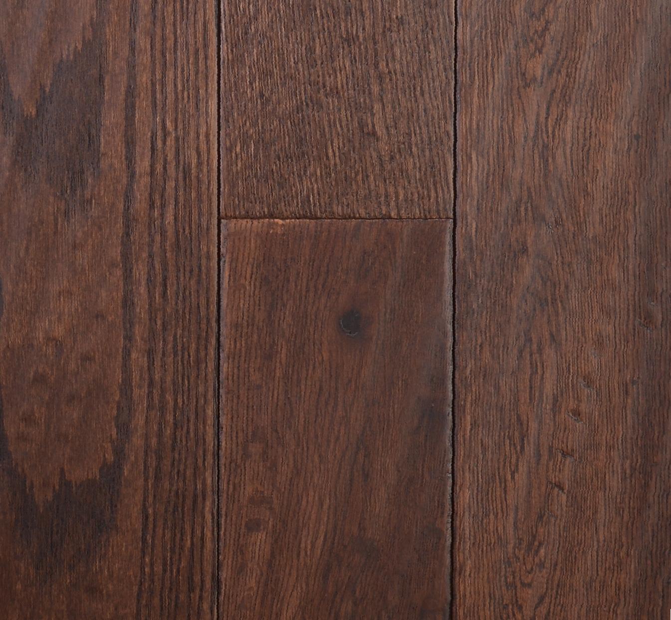 Species: Red Oak Structure: Hardwood Floor Finish: Handscraped & Wirebrushed Size: 5″ x 3/4″ Color: Umber